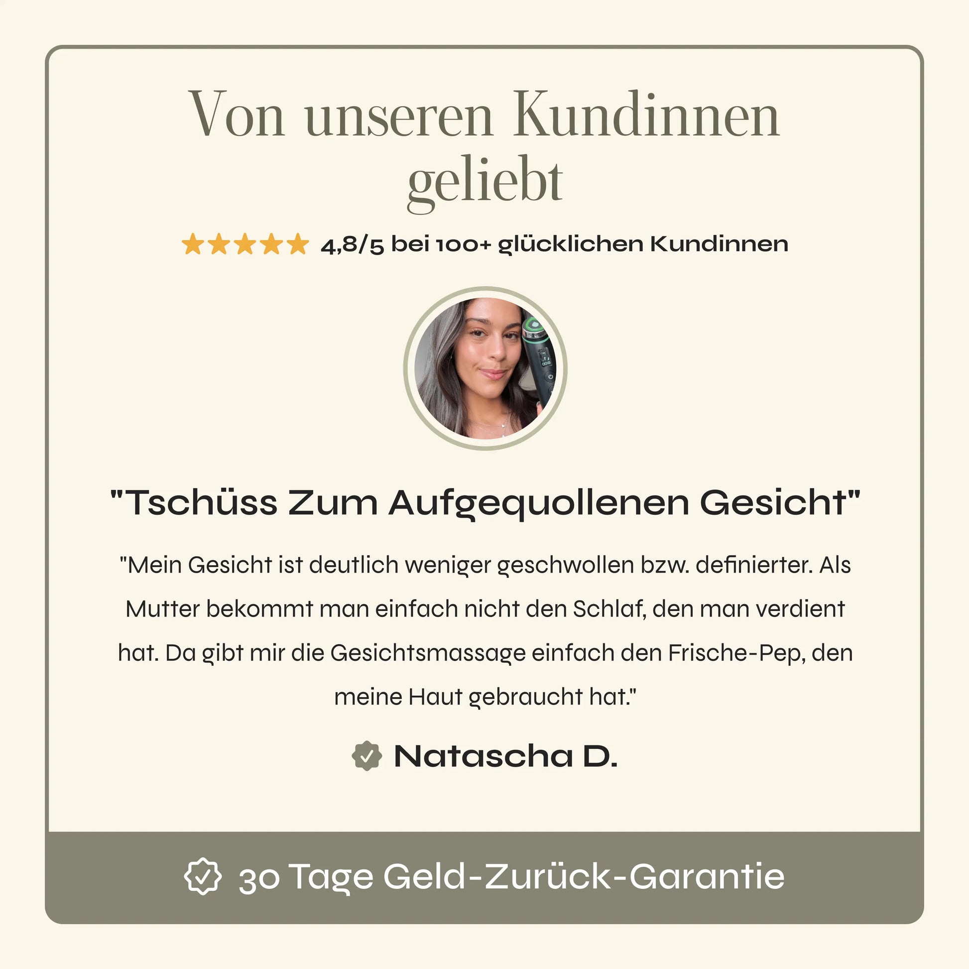 Wir sind von uns überzeugt! Deshalb bieten wir dir eine 30-Tage Geld-zurück-Garantie. Erlebe selbst sichtbar frische, strahlende Haut - oder du bekommst dein Geld zurück. Ganz ohne Risiko und ohne Wenn und Aber.