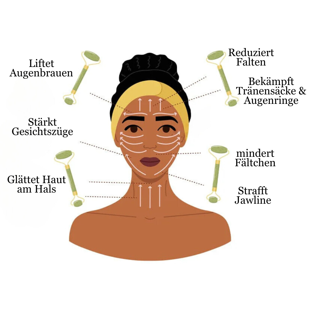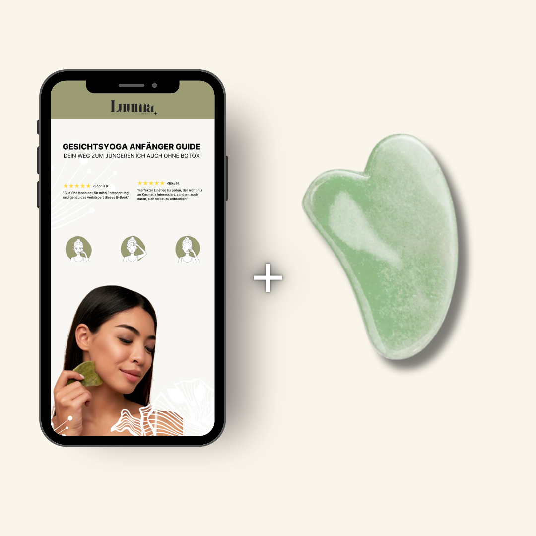 Gesichtsyoga stärkt die Gesichtsmuskulatur, wodurch die Haut straffer wirkt und der natürliche Alterungsprozess verlangsamt werden kann. In Kombination mit Gua Sha regst du zudem die Durchblutung an, was Schwellungen reduziert und der Haut ein strahlendes Aussehen verleiht. Die Massage hilft außerdem dabei, Spannungen zu lösen und fördert die Lymphdrainage, was zu einem frischen Teint führt.