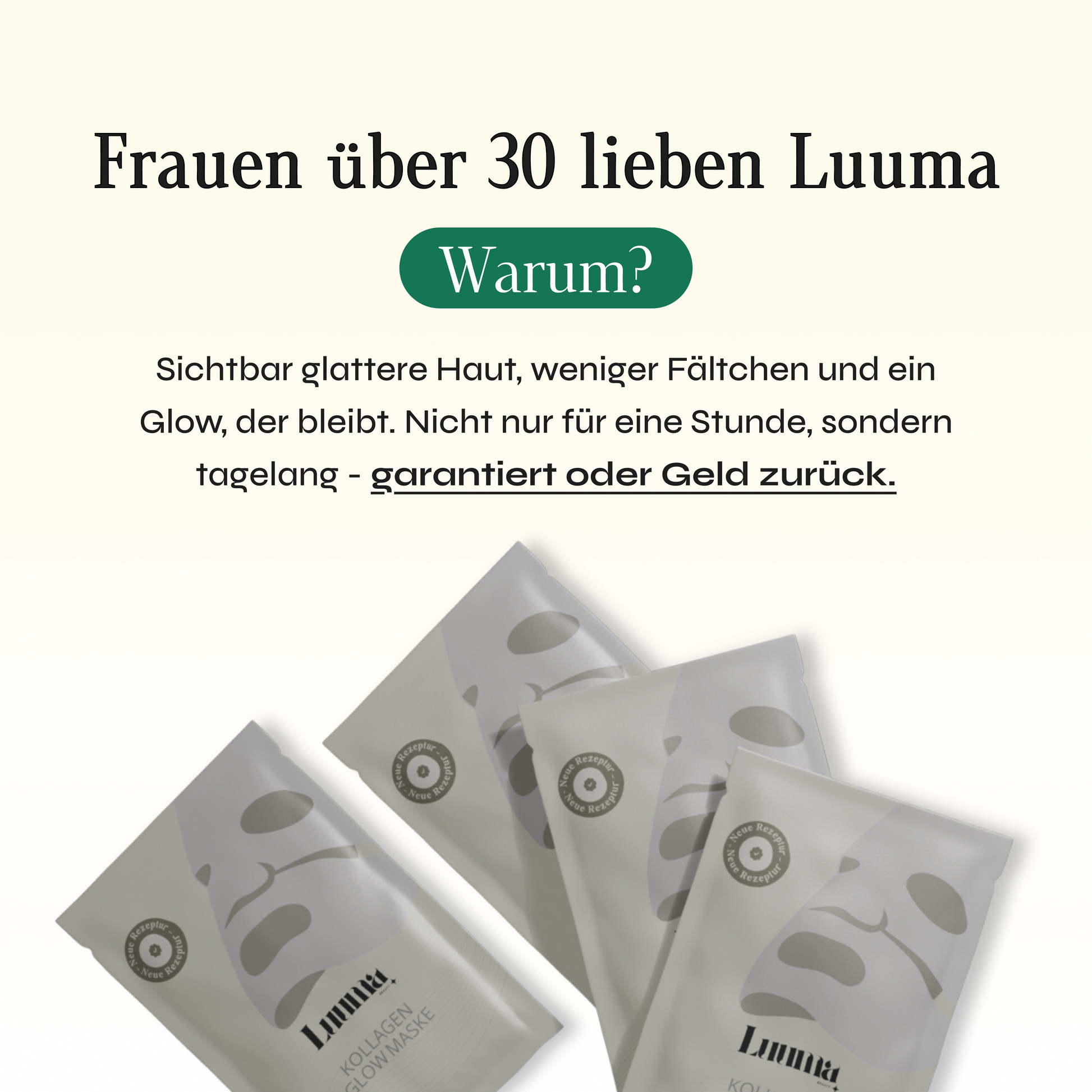 Luuma: Niedermolekulares Kollagen, 500x kleiner, dringt tief ein, wirkt 2-4 Stunden.